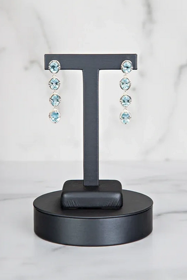 This extraordinary necklace boasts a breathtaking display of thirty-five Swiss Blue Topaz gemstones, each expertly handset with impeccable precision, resulting in approximately 70 carats of pure luxury.